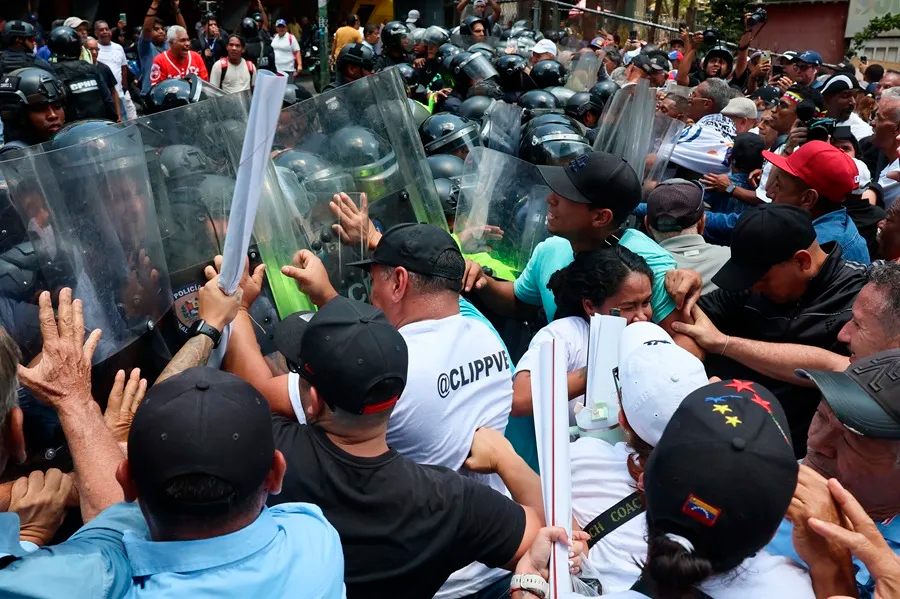 Caracas.- Un fuerte cerco de funcionarios de la Policía Nacional Bolivariana (PNB) de Venezuela bloquea...
